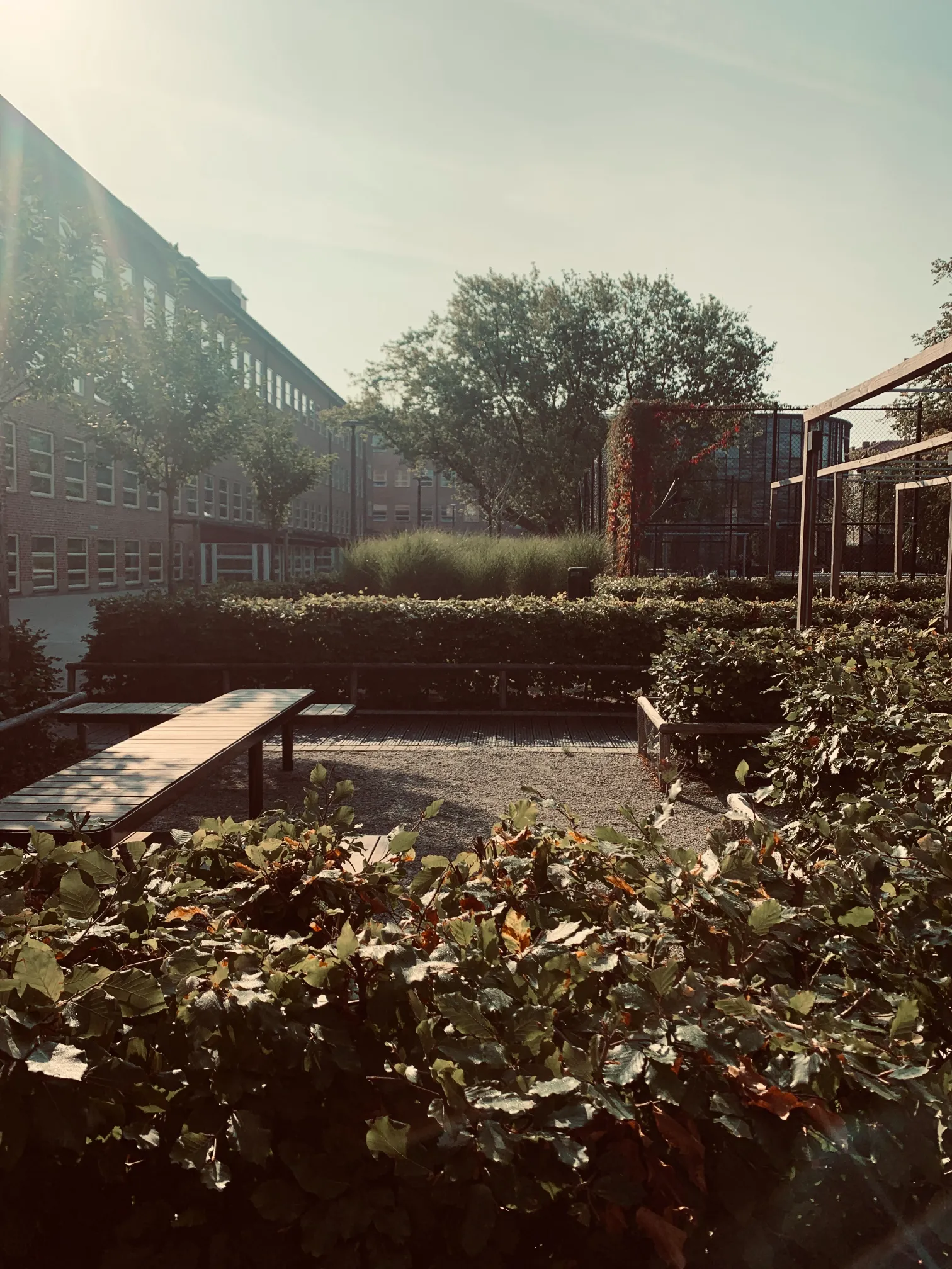 Projektet har pågått parallellt med att en ny detaljplan tagits fram för fastigheten, vilket inneburit diverse utredningar när det gäller olika byggnaders placeringar på tomten, friytor, angöring, trafik och generell logistik samt samordning mellan olika projektörer, Gatukontoret, Eon och beställare. Då den kommande skolgården inkräktar på Borgarskolans befintliga skolgård har fokus legat på att samordna gymnasieelevernas önskemål och krav med Grundskoleförvaltningens behov av en väl fungerande och utvecklande utemiljö för de nya eleverna som inte stör den befintliga verksamheten. Gården innehåller bland annat studiebersåer, pergolor, gungor, upphöjda och nedsänka gräsytor, många olika sittmöjligheter samt en konstgräsplan för basket.